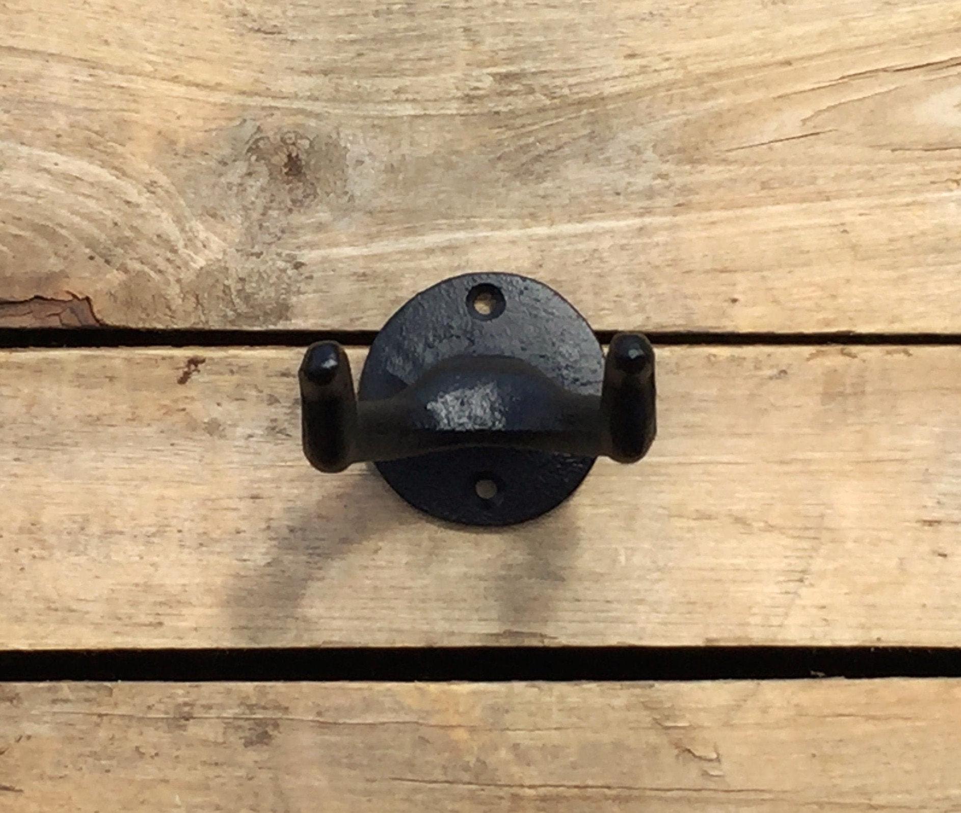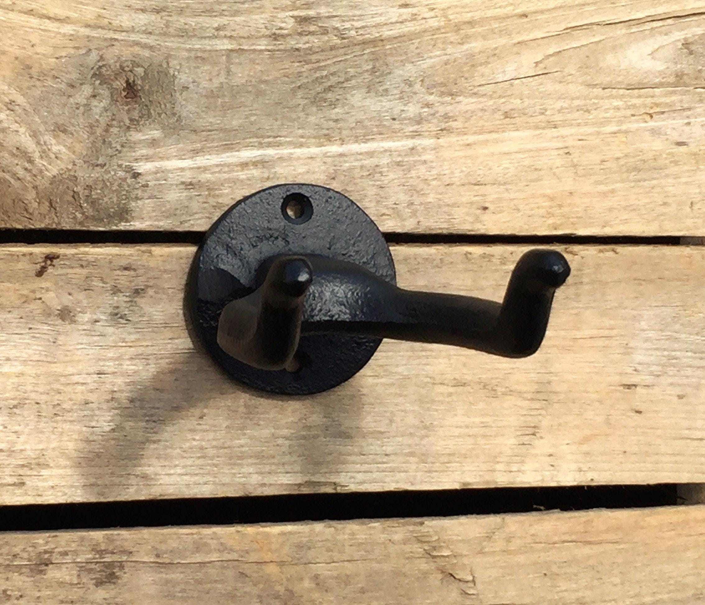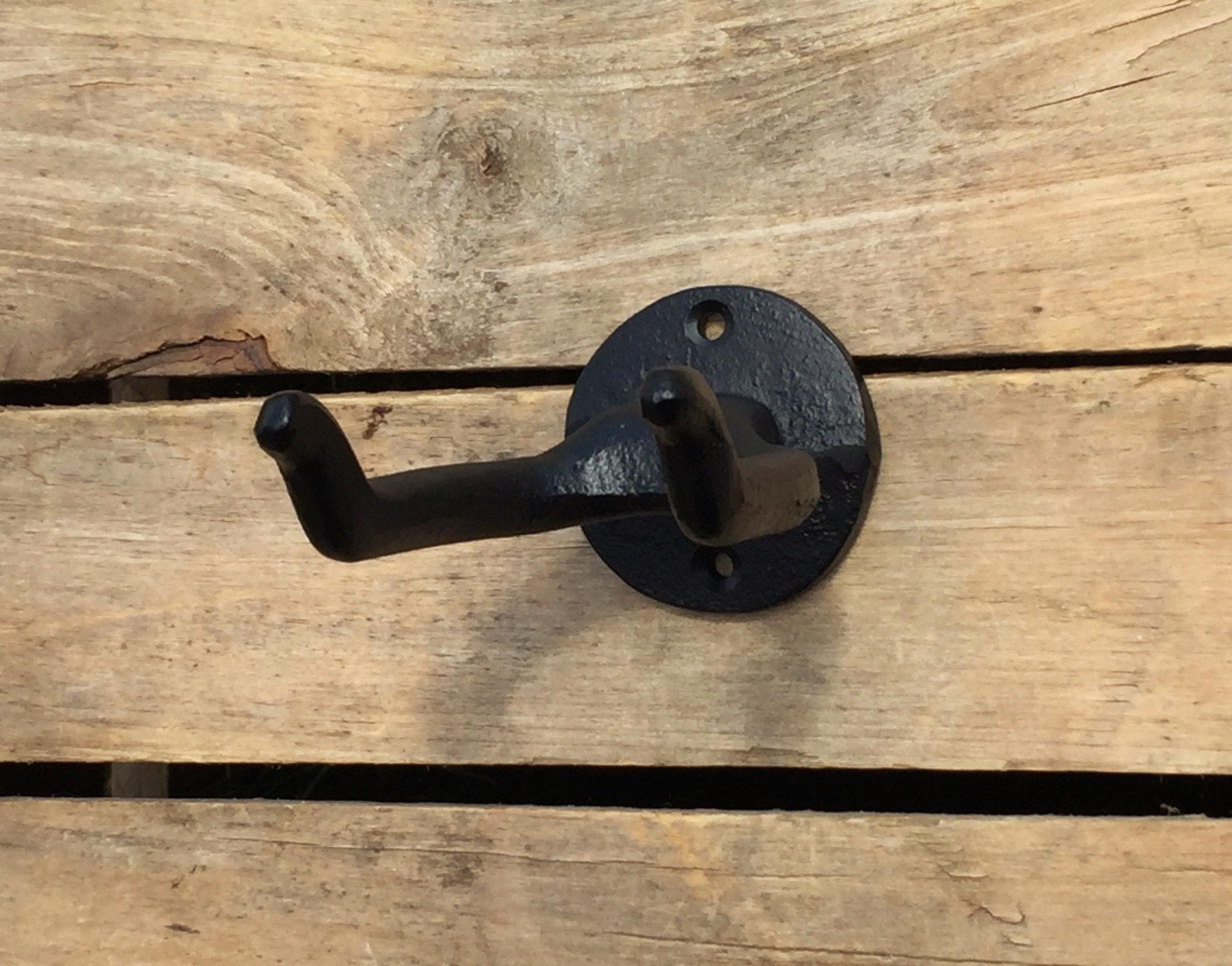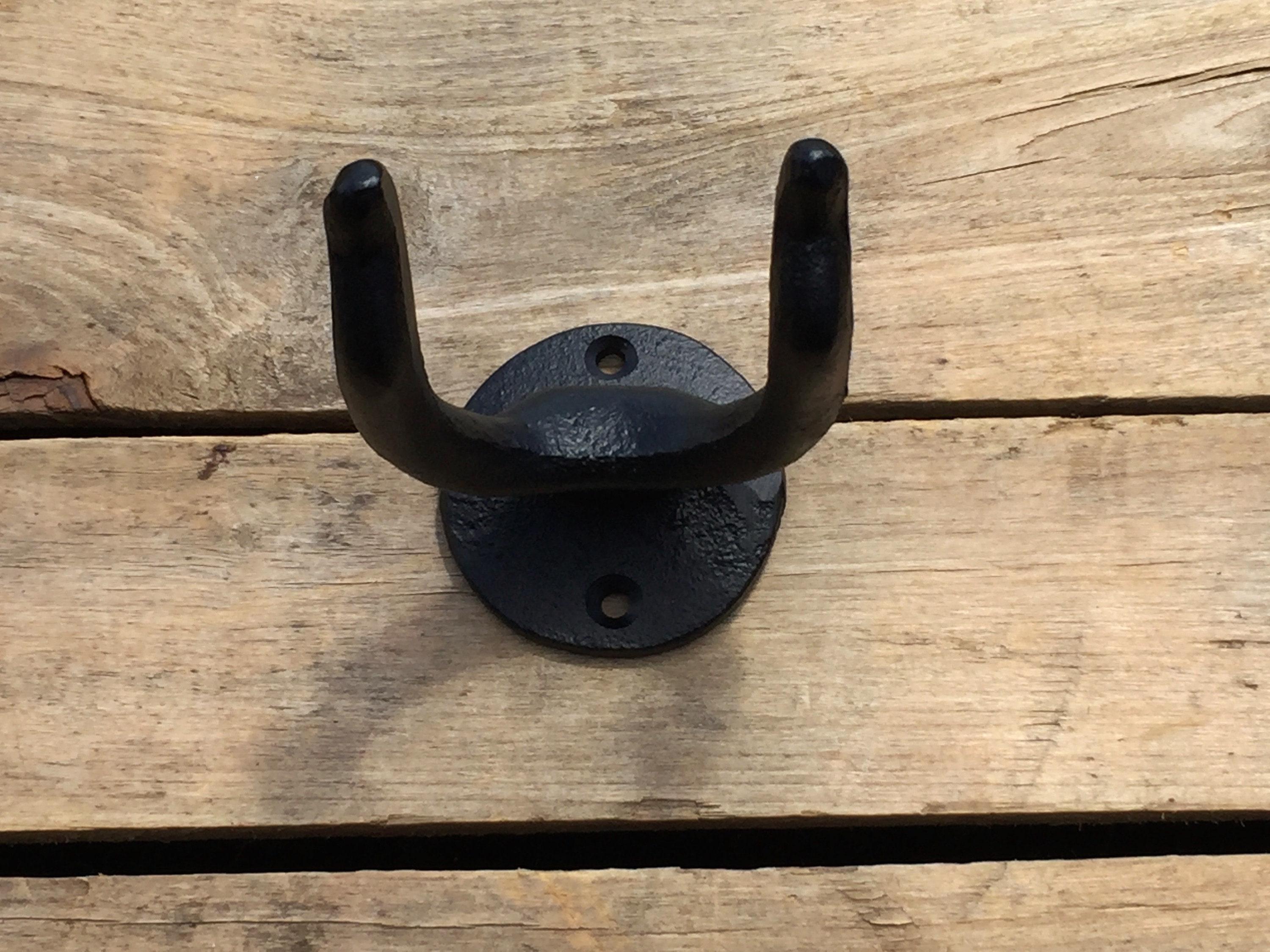 This heavy duty hook is made of solid cast iron. Organize your garage or shed by hanging your rakes, shovels, axes, and more! Available with optional clear coating to protect this hook from rusting or fading. We recommend choosing this option for outdoor use, or use in areas of high humidity (ie bathrooms, indoor pools/saunas, etc)
